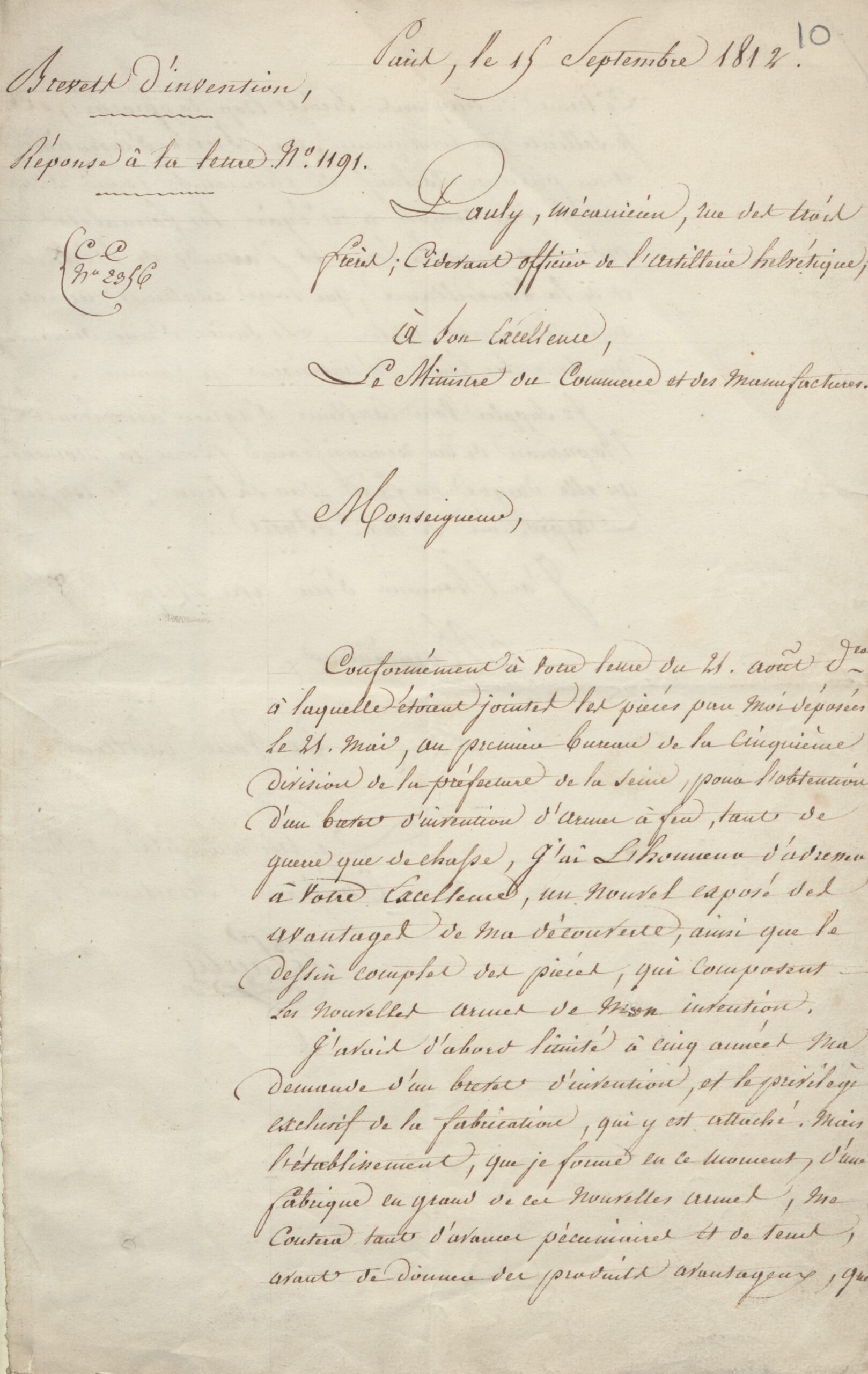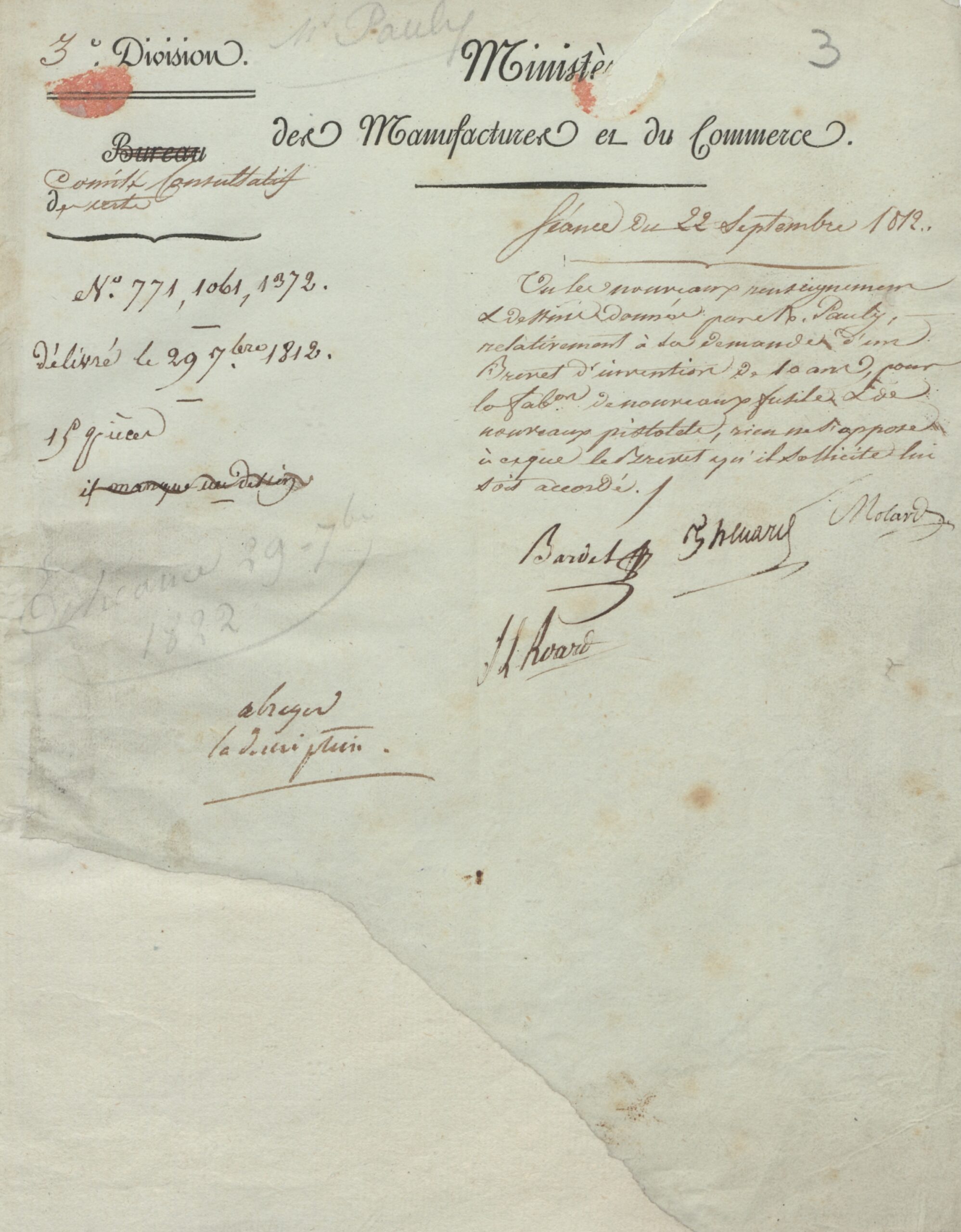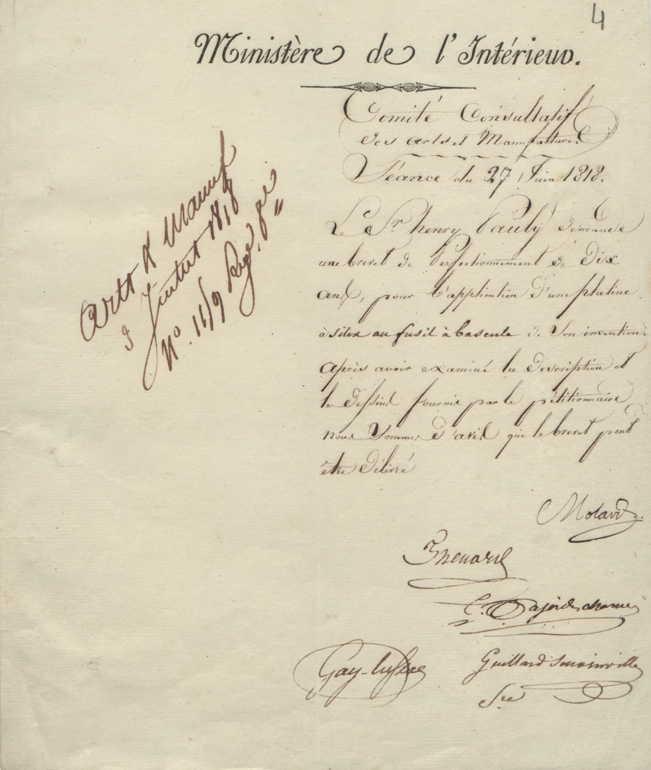 Jean Samuel Pauly's 1812 Improvement in Firearms Patent