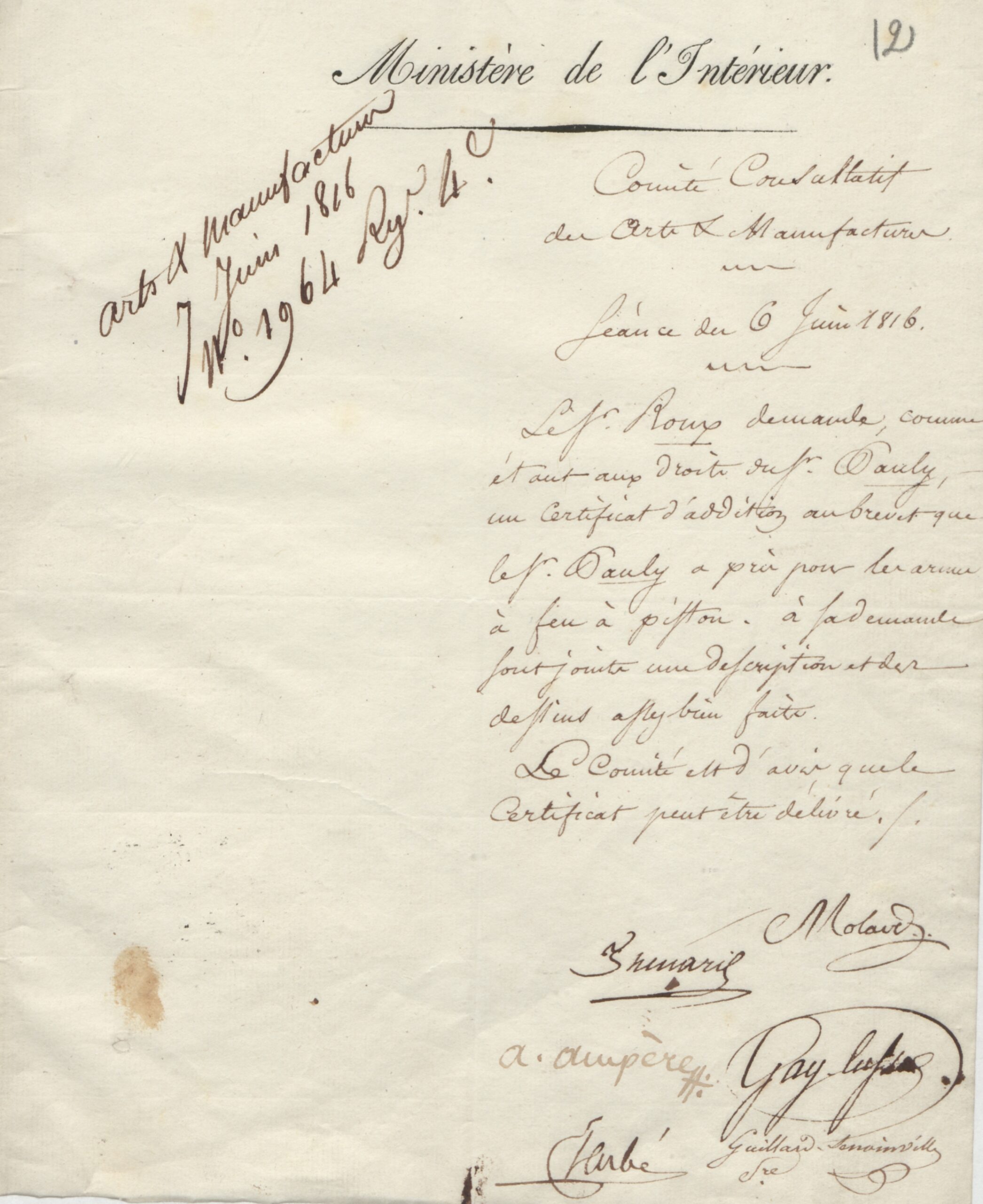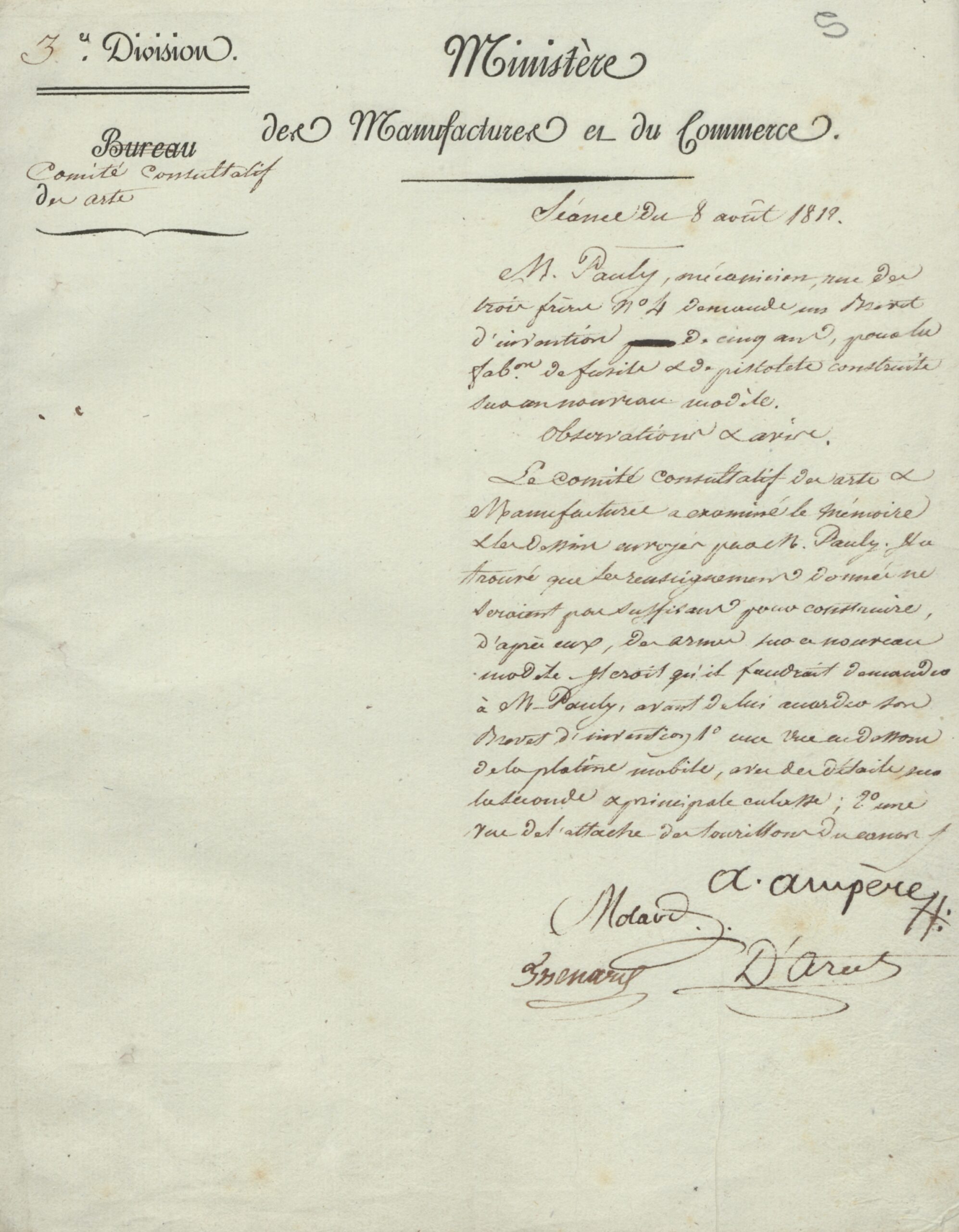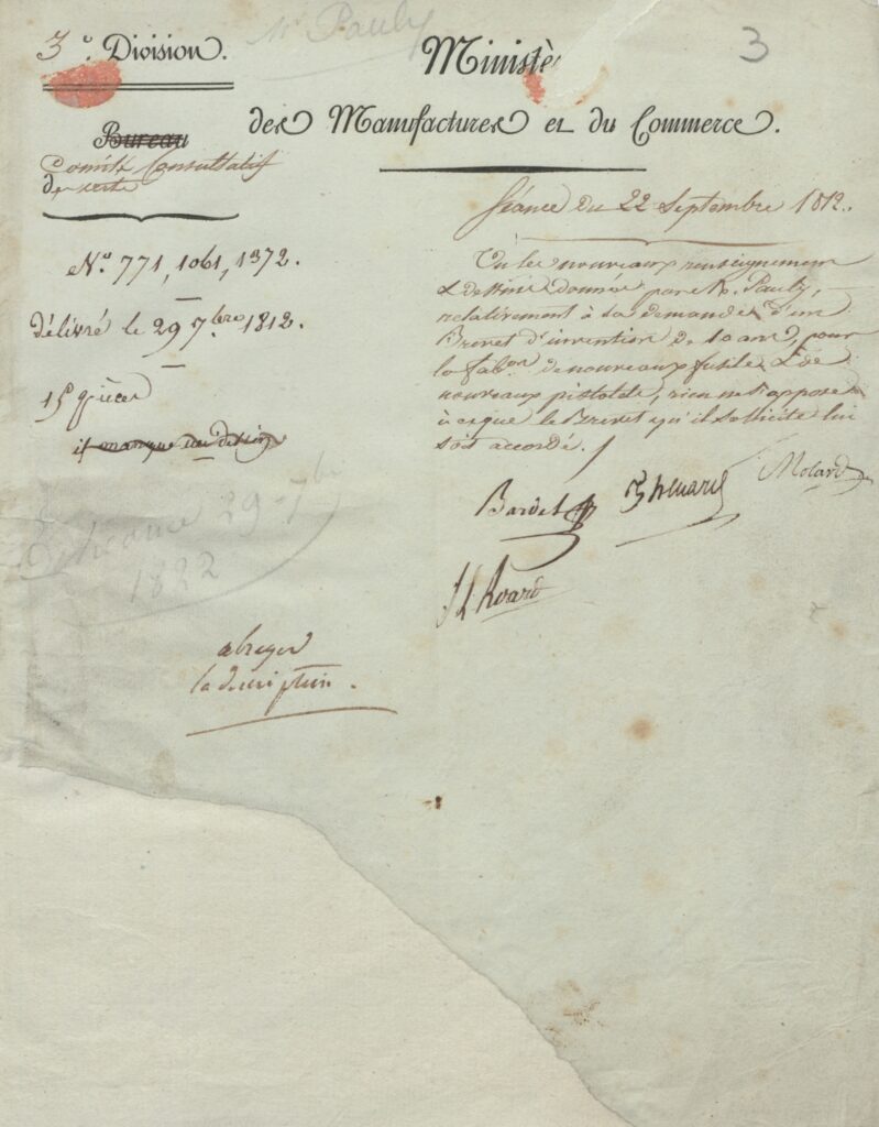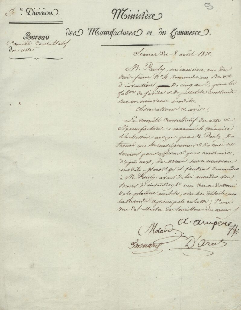 Jean Samuel Pauly's 1812 Improvement in Firearms Patent