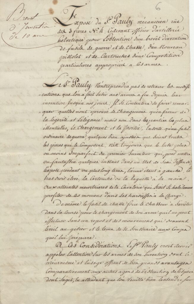 Jean Pauly Pauly's patent details an innovative breech-loading firearm design that represents a significant advancement in firearm technology of the early 19th century. The key features of this invention include: